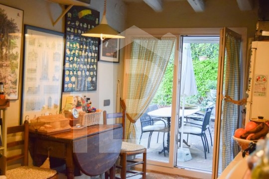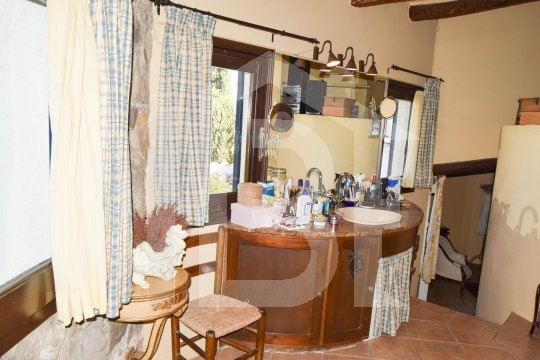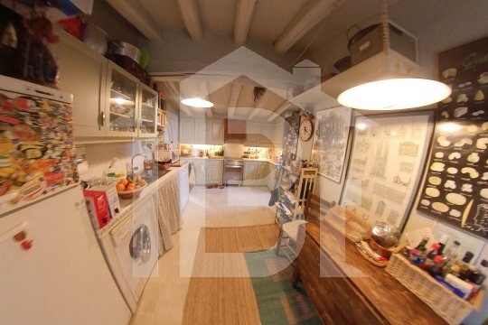 La casa està distribuïda en tres nivells. Cuina en la planta superior amb espai menjador integrat i des de la qual es pot accedir a la zona de barbacoa del jardí i a una terrassa orientada nord, Baixant un tram d’escales trobem un rebost. Just seguit el dormitori suite (bany amb jacuzzi) i un lavabo de cortesia amb petita dutxa.